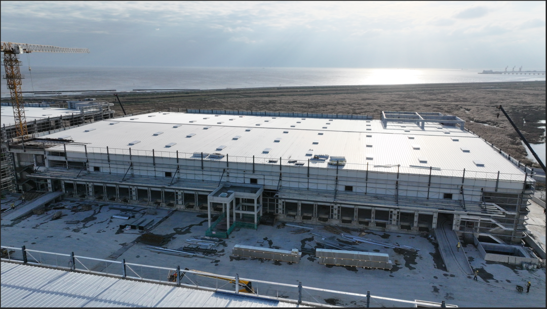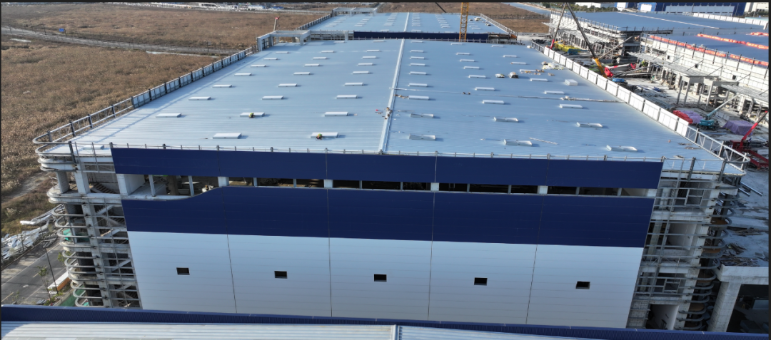 濟(jì)寧一建鋼結(jié)構(gòu)工程有限公司承建的金屬屋面及維護(hù)工程,涉及1#-4#物流倉(cāng)庫(kù)、高架立體庫(kù)。倉(cāng)庫(kù)跨度80米,屋面標(biāo)高34.1米,為雙向找坡結(jié)構(gòu)。該項(xiàng)目建設(shè)規(guī)模大、工期緊、技術(shù)精度要求高、工況復(fù)雜,自項(xiàng)目開(kāi)始施工。公司對(duì)現(xiàn)場(chǎng)管理嚴(yán)格要求,積極配合業(yè)主及總包的整體調(diào)配,施工嚴(yán)格執(zhí)行施工方案,遵循規(guī)范標(biāo)準(zhǔn),合理安排人、機(jī)、料等,戮力同心將馬士基臨港旗艦倉(cāng)項(xiàng)目打造成精 品工程、優(yōu) 質(zhì)工程。